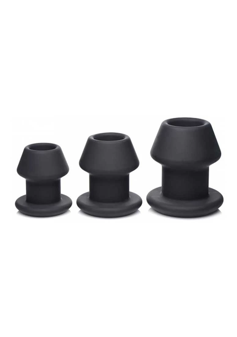 A 3 piece anal dilator set for advanced anal enthusiasts. The Gape Grommet set is designed to spread your hole nice and wide so you or your partner can enjoy peeking inside your deepths! The graduated sizing and tapered tips make these silicone dilators easier to insert and assists in gradually leveling up your backdoor stretch at your own pace.Each Grommet is made with premium silicone – plush and velvety and the perfect blend of firmness and flexibility to keep things comfortable while providing a satisfying backdoor stretch. Start off slow and open your hole with the smallest grommet, and increase to the medium and large grommets when you think you are ready – enjoy new levels of stretch with each session!The high quality silicone is phthalate free and body safe for worry free anal stretching. Compatible with water based lubricants only!