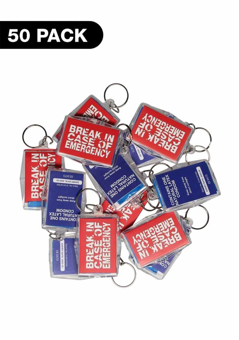 This handy keychain with the sentence Break In Case Of Emergency contains 1 condom. When you get lucky all you have to do is open your keychain and you are all set! After you have used the condom you can just place a new rectangular condom in the keychain and you are ready to go. With this keychain you will always have condom with you. Fun to have and fun to give as a gift!