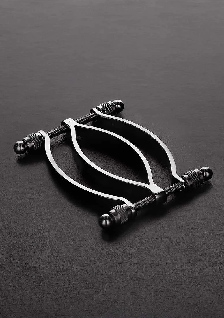 This pussy clamp allows you to take full control of your partner. Spread your partners libia wide open gean access to their clitoris and vagina and leave them in pinching pain and pleasure.